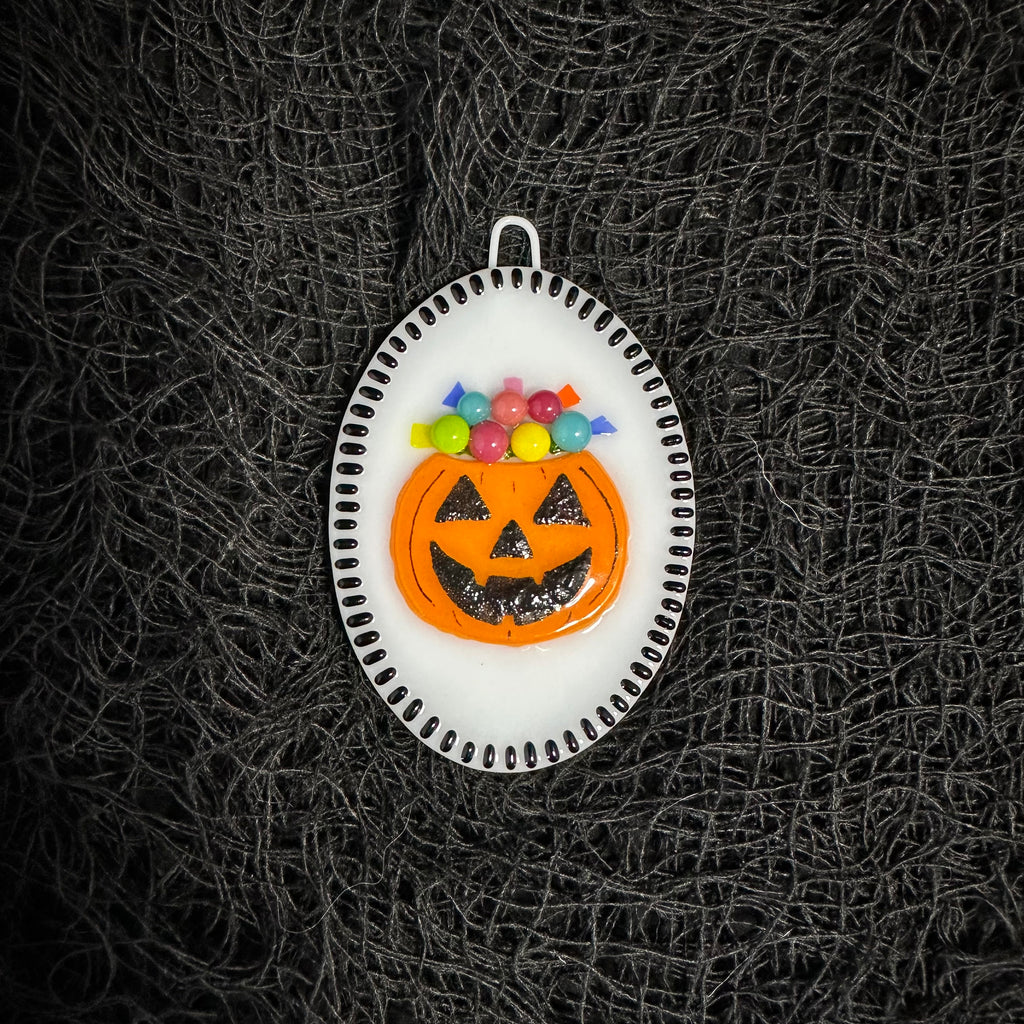 Made with fused opalescent Bullseye glass produced locally in Portland, this Wall Plaque features a built-in hanging loop for easy hanging to add a little bit of spooky charm to any wall.